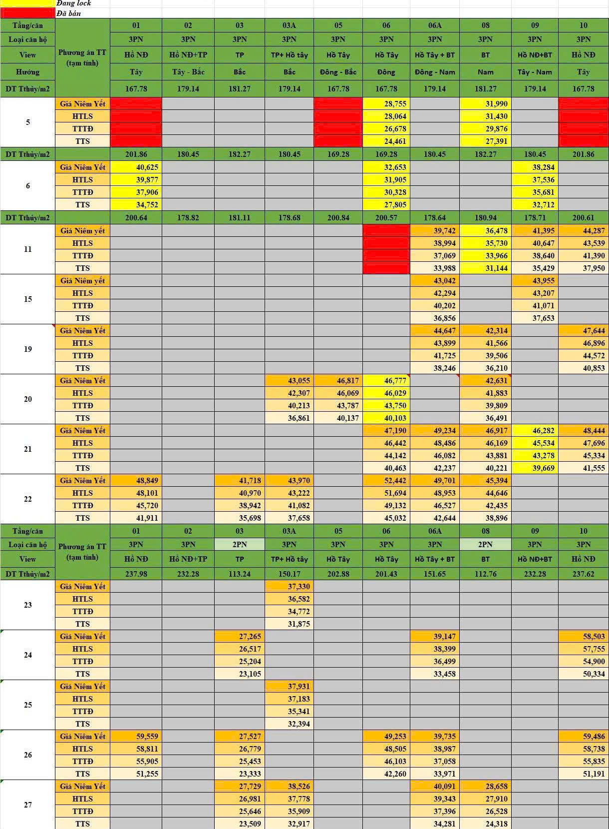 - Cơ cấp căn hộ : từ 113,2m² đến 239,1m². Riêng các căn Penthouse tầng 29-30 được thiết kế đặc biệt với diện tích rộng hơn 1000m2.